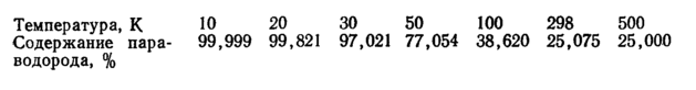 При сжижении водорода происходит самопроизвольное медленное превращение орто-парамодификаций. Наиболее стабильный ортоводород превращается в парамодификацию [48]. Жидкий водород, как показано ниже, практически на 100% состоит из параводорода: