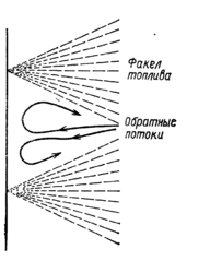 Рис. 1.9. Вихревые токи газа у головки камеры сгорания