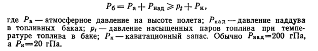 Образование паровых пробок и нарушение подачи подкачивающими и основными насосами можно предупредить созданием избыточного давления в баках и топливной системе двигателя. При этом давление в топливном баке Рб должно, отвечать соотношению: