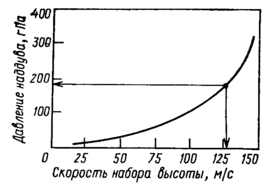 Рис. 9.9. Зависимость потребного наддува топливных баков от скорости набора высоты самолетом