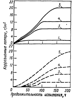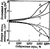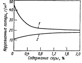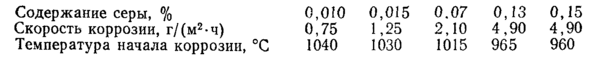 Оксиды серы снижают коррозионную стойкость хромонике-левых сплавов. Зависимость скорости газовой коррозии от суммарного содержания в топливе соединений серы (в пересчете на серу) показана ниже [62]: