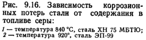 зия стали с ростом содержания серы до 1 % при 840 °С постоянно возрастает, а при 920 °С снижается (рис. 9.16). Такое снижение коррозии наблюдается только в зоне, близкой к горящему факелу пламени. Исследованиями авторов [197] показано, что это явление связано со способностью серы в малом количестве подавлять ионизацию продуктов сгорания.