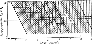 По воздействию на резины и герметики реактивные топлива могут очень сильно различаться. Обобщенные результаты исследования по междуведомственной методике (в приборе ЦИТО-С) стойкости резины ИРП-1078 в различных топливах без антиокислительных присадок приведены на рис. 9.17. Считается, что резина является стойкой по отношению к топливу, если в результате испытания коэффициенты К и К составляют не более 0,5. Испытанные топлива по воздействию на резины делятся на две группы. В первую группу входят гидрогенизационные топлива; в них резина выдерживает только от 2 до 6 трехчасовых этапов испытаний в протоке топлива на кольцо при 135 °С. Вторую группу составляют получаемые без гидрогенизации топлива Т-1 и ТС-1, а также смесевые топлива ТС-1, полученные смешением прямогонных и гидроочищенных фракций. В этих топливах резина сохраняет работоспособность в течение 3—9 и более указанных этапов испытаний.