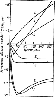 Рис. 9.18. Кинетика изменения газового объема над реактивным топливом с нитрильной резиной: