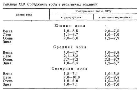 Изменение качества топлив при транспортировании. Качество реактивных топлив при транспортировании'может изменяться только за счет обводнения, загрязнения и смешения с топливом другой марки (группы). Уровень обводненности реактивных топлив в аэропортах гражданской авиации по разным климатическим зонам характеризуют данные табл. 12.3 [151].