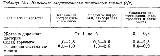 Переходя в конденсированное состояние, не успевает оседать на дно резервуара и не удаляется при сливе отстоя, Динамику изменения содержания загрязнений реактивных топлив в различных технических средствах характеризуют данные табл. 12.4.