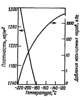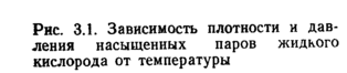 На рис. 3.1 представлена зависимость давления насыщенных паров и плотности жидкого кислорода от температуры.