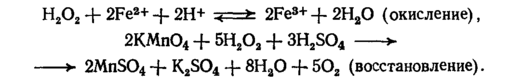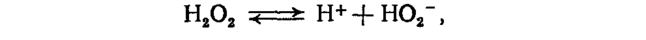 Пероксид водорода—высокореакционное соединение и в зависимости от условий может вступать в реакции окисления, присоединения, восстановления или переноса пероксидного радикала. Он является очень слабой кислотой. При диссоциации такой кислоты по реакции