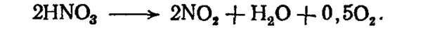 Чистая безводная азотная кислота неустойчива и разлагается при обычных температурах по реакции