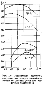 Из табл. 3.3 видно, что нефтепродукты с кислородом увеличивают удельный импульс примерно на 12% по сравнению со спиртами. Плотность топлива на основе керосина выше, что объясня-