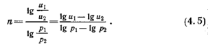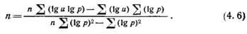 В тех случаях, когда экспериментальных данных много, но имеет место заметный разброс точек, рекомендуется подсчет значе-ний п делать по методу наименьших квадратов, используя формулу