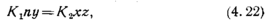 скорость обратной реакции u2 = K2xz (4.21)