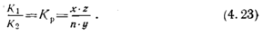 Здесь K1 и K2 - коэффициенты пропорциональности произведений концентраций или коэффициентов условной формулы, которыми определяется количество грамм-молей продуктов сгорания, т. е. концентраций соответствующих продуктов сгорания.