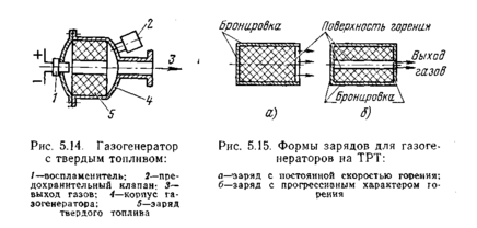 Рабочее тело для привода газовой турбины ТНА можно получить, сжигая твердое топливо. Наиболее широко твердое топливо применяется для раскрутки турбонасосного агрегата в условиях запуска двигателя. Подача основных компонентов топлива в газогенератор невозможна при неподвижных насосах.