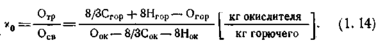 азделив количество кислорода, требуемого для окисления 1 кг заданного горючего, на количество свободного кислорода заданного окислителя, получим