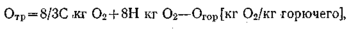 где Отр - требуемое количество окислителя - кислорода для стехиометрического сжигания 1 кг горючего - кероси-на СnНm; Огор - количество кислорода, растворенного в 1 кг горючего,