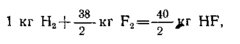 Тогда 2 кг Н2 + 38 кг F2=40 кг НF или из расчета на 1 кг горючего