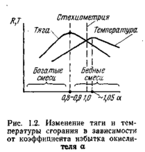 Если >1,0, топливо имеет избыток окислителя, эти смеси называют «бедными» горючим или «обедненными».