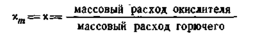 Знаком «0» отмечается, что количества окислителя и горючего относятся к условиям стехиометрической реакции. В реальных условиях работы двигателя стехиометрические соотношения между окислителем и горючим часто не выполнятся, и тогда действительное отношение массового расхода окислителя к массовому расходу горючего обозначается т или :