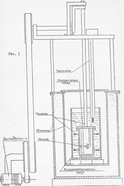 Бомбу осторожно погружают в калориметрический сосуд, присоединяют к ее зажимам электропровода и устанавливают в калориметрическом сосуде термометр и мешалку. Перед началом испытаний проверяют положение отдельных частей установки: