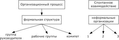 Группы бывают формальные (созданные по воле руководства, чьей первичной функцией по отношению к организации является выполнение конкретных задач) и неформальные (спонтанно образующиеся из людей, регулярно взаимодействующих для достижения определённых целей (нечётко поставленных и неясных)).