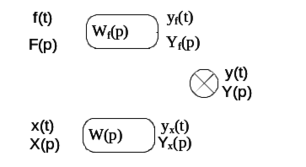 Y(p),X(p),F(p)- изображение функций y(t),x(t),f(t) соответственно.