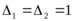 Так как все контура касаются как первого так и второго пути, то адьюнкты данных путей равны ∆1=∆2=1.