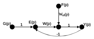 На рисунке 5.3 изобразим сигнальный граф системы (рисунок 5.2). Имеется 2 пути от точки входа Х(р) к точке выхода У(р):