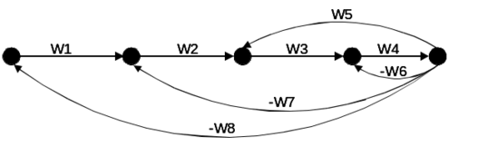 L1=-W4W6 ; L2=-W2W3W4W7; L3=-W1W2W3W4W8; L4=-W2W5W7; L5=-W1W2W5W8 .