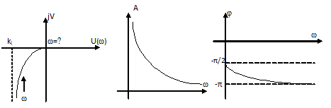 постоянно увеличивается, а угол φ(ω) уменьшается от π/2 до 0