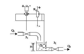 уровень Н = Н(0), а поплавок П и задвижка З1 неподвижны. Движок потенциометрического датчика