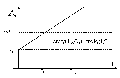 Постоянная времени изодрома численно равна интервалу времени, в течение которого регулирующее воздействие изменяется на величину, равную первоначальному изменению за счет пропорциональной составляющей, т.е. увеличивается в 2 раза.