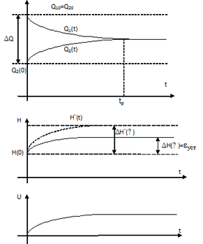 приток и расход жидкости сравняются и уровень достигнет заданного значения H(0) (рисунок 11.3 в).