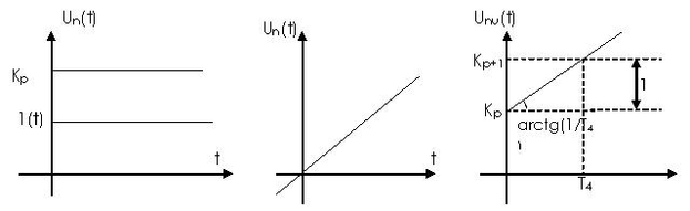 Рисунок 11.5 Составляющие переходных характеристик П-, И-, ПИ-регуляторов.
