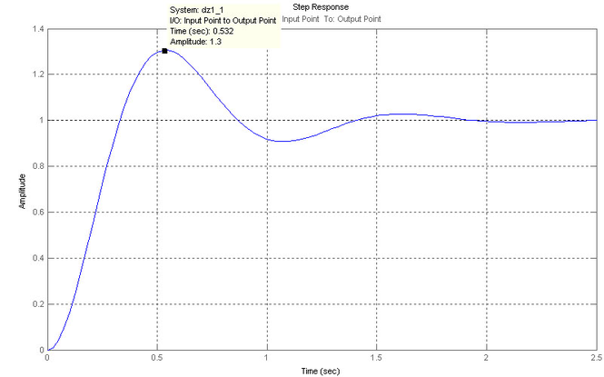 , то найдем корень характеристического уравнения который соответствует данному перерегулированию. Значение величины перерегулирования и корня характеристического уравнения связаны между собой формулой: