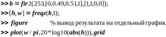 Спроектируем КИХ фильтр с помощью функции fir2 пакета MATLAB