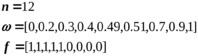 - вектор значений частоты (частота вводится в долях частоты Найквиста),