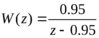 Коэффициенты фильтра выбраны так, чтобы фильтр обладал астатизмом нулевого порядка (отрабатывал постоянное возмущение без ошибки). Для этого достаточно, чтобы суммы коэффициентов числителя и знаменателя передаточной функции были равными.