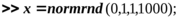 Статистическое определение плотности вероятности можно выполнить с помощью построения гистограммы командой
