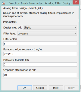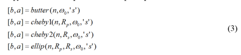 >> [b,a]= ellip(n,3,80,w0,'s');