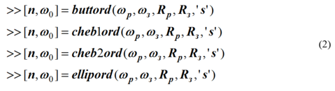 >> [n,w0]=cheb1ord(0.48,0.52,3,80,'s');