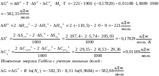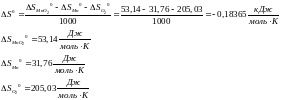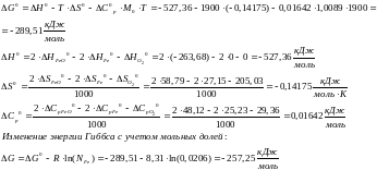 Определим энергию Гиббса реакции, для её определения необходимо подсчитать