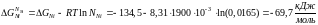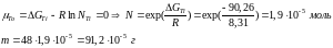 Энергия Гиббса компонентов с учетом мольной концентрации: