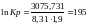 Для вычисления константы равновесия воспользуемся формулой Вант – Гоффа: