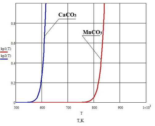 Сравнение давления pCO2 при нагреве MnCO3 и CaCO3:
