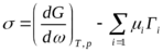 Приращение вещества i в межфазном слое есть адсорбция dni /dω = Гi этого вещества. Поэтому