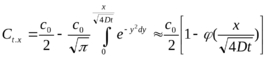 где Cо — концентрация в начале процесса диффузии в сечении трубы O - O; φ[x/√4Dt] — специальная функция из справочника функций Фурье — Фика.