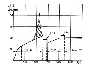 Рис.8.1. Зависимость теплоемкости железа от температуры.