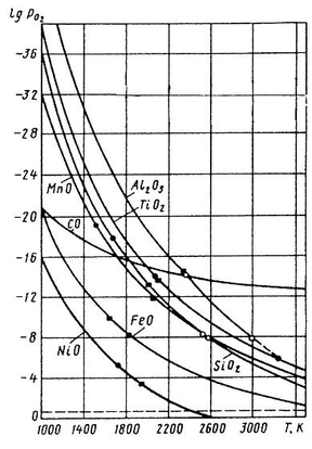 Рис.8.12. Сравнение упругости диссоциации ряда различных оксидов при повышении температуры.