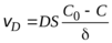 – скорость диффузии при наибольшем градиенте концентрации (С0 – 0)/δ.